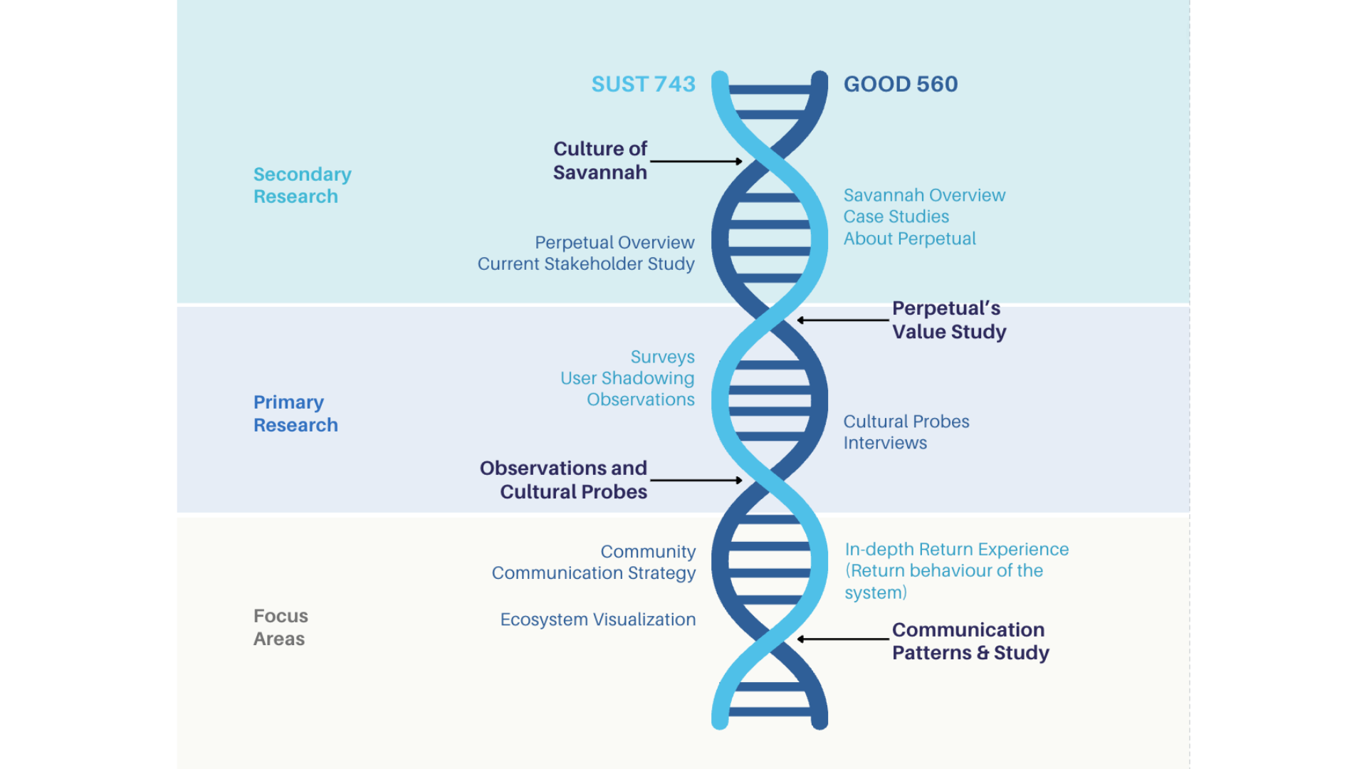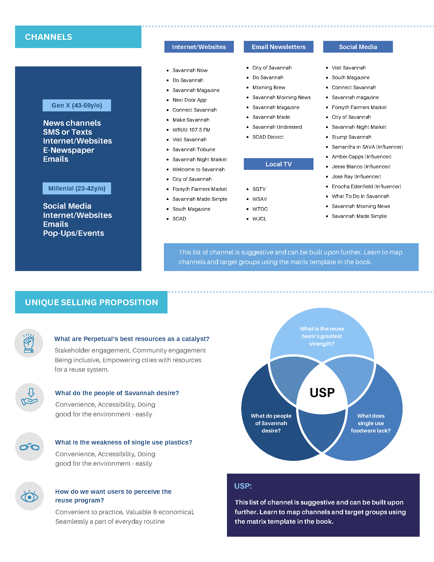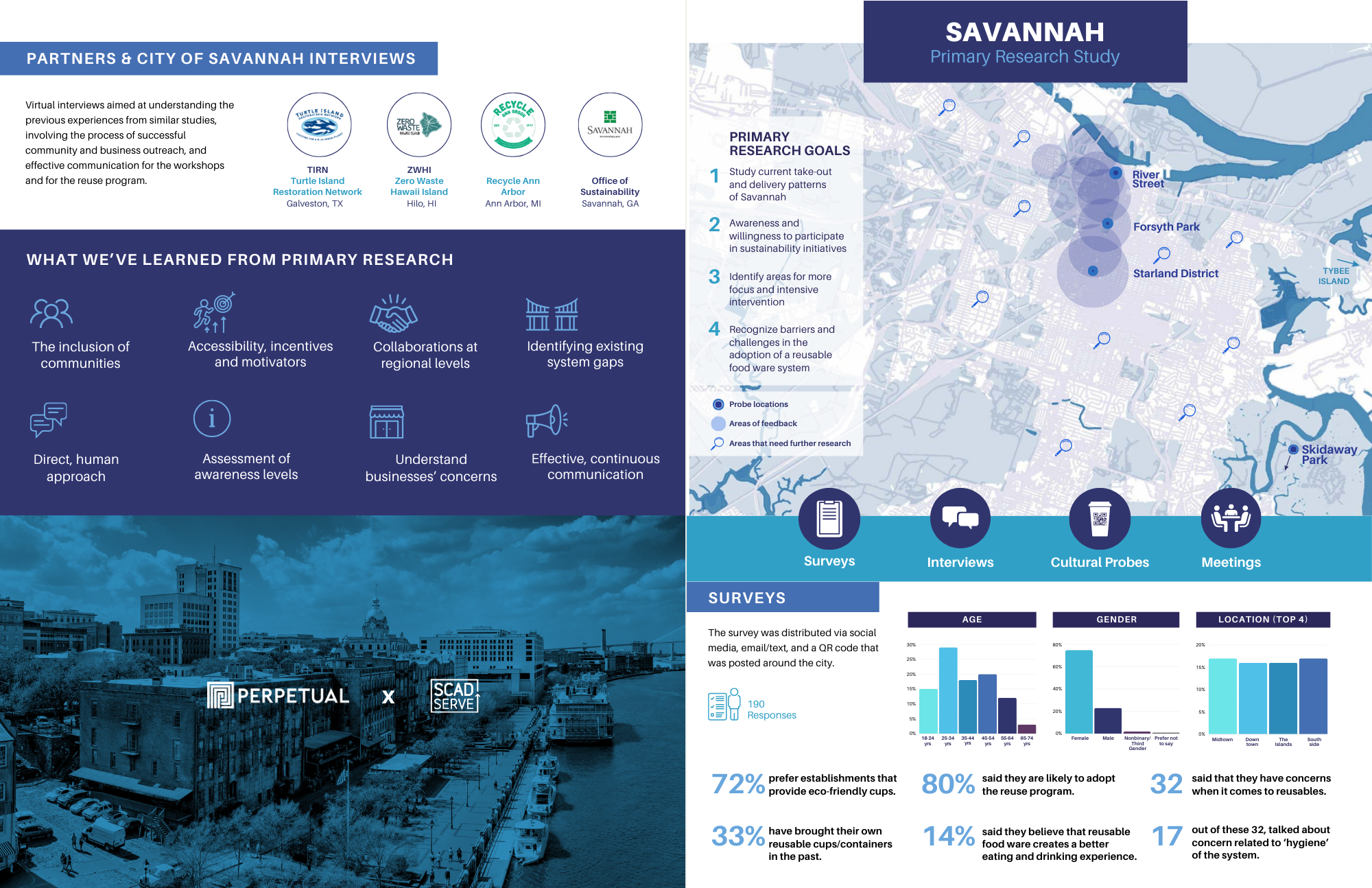 Our goal was to familiarize ourselves with the concept of reusable foodware and investigate the overall attitudes and behaviors of Savannah consumers regarding the reuse program. Develop a body of primary research on the attitudes and behaviors of the Savannah community toward reusable food containers and food ware systems, and craft a preliminary communications strategy to assist Perpetual in catalyzing local stakeholder engagement and commitments.