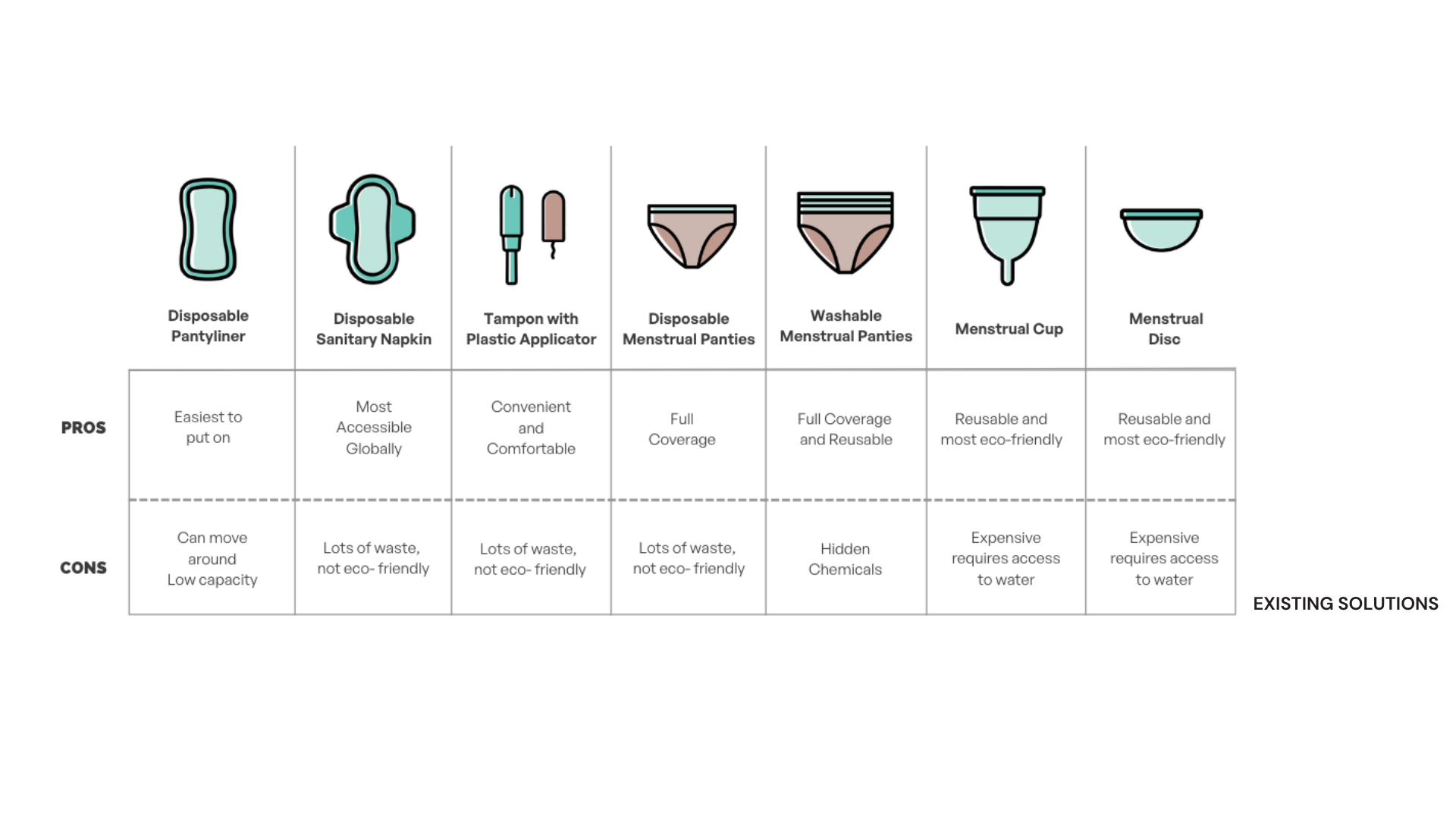 We We explored deeply into various facets, ranging from the materials used in tampons to their disposal. A visual product lifecycle was crafted to enhance our comprehension of the research. Furthermore, we thoroughly examined existing solutions to ascertain potential opportunities and develop innovative alternatives.