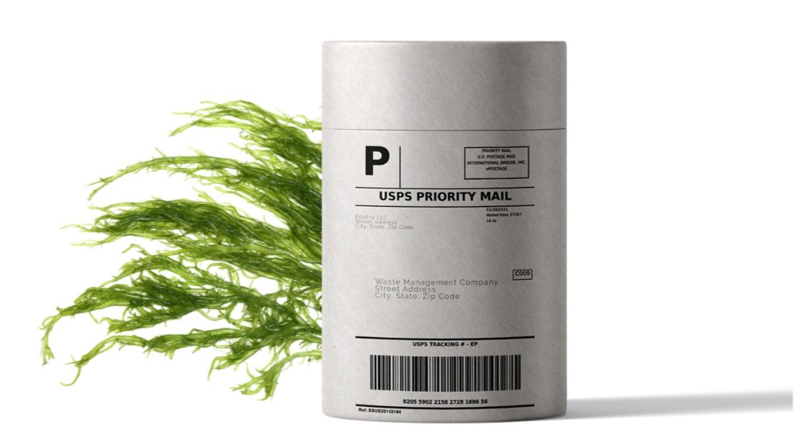 Mycelium packaging tube is toxin-free, fully compostable, and printed using algae ink
