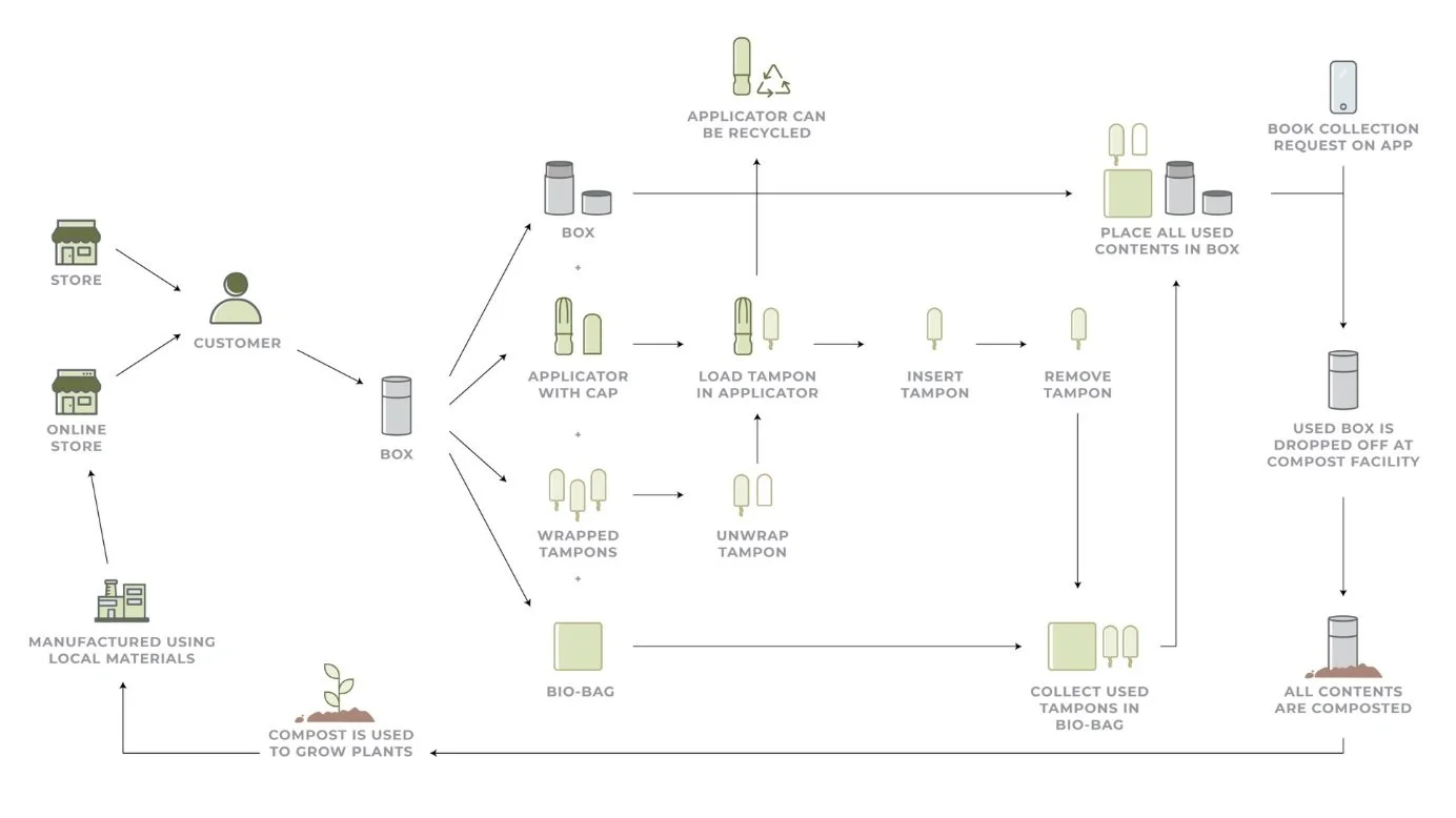 - Transition tampons to a circular economy by offering a convenient subscription service with eco-friendly, compostable materials.